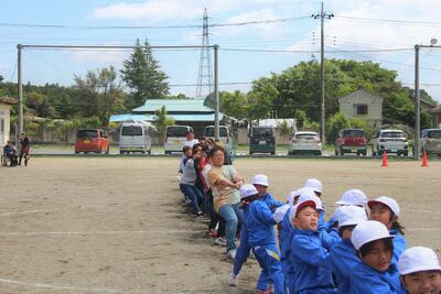 運動会種目No.5「家族のき・づな引き」 子どもたちのピンチにお父さん、お母さんが応援に駆けつける競技です。