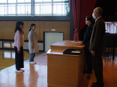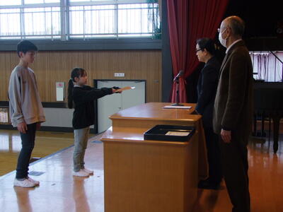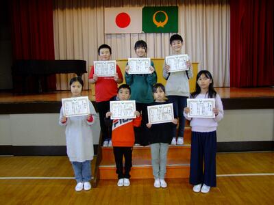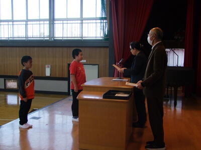 今年度は、健康賞1名、努力賞2名、親切賞2名、学芸賞2名の計7名の児童が表彰されました。