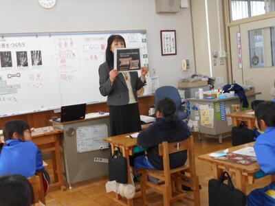 骨には「体を支える」「体の中身(脳や内臓)を守る」「カルシウムを貯める」「血をつくる」など、大切な役割があることを、教えてくださいました。