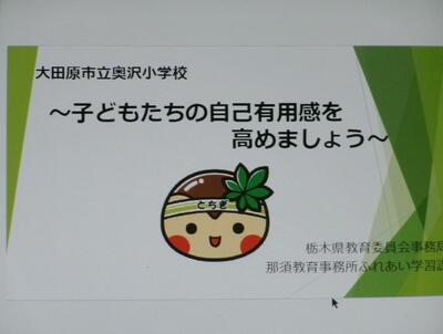 また、教職員の人権教育研修として、那須教育事務所の大輪先生をお招きし、「子どもたちの自己有用感を高めましょう」をテーマにワークショップを行いました。