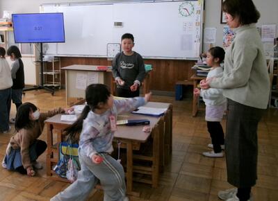 1月27日に、1・2年生は生活科で日本の昔遊び学習を体験しました。