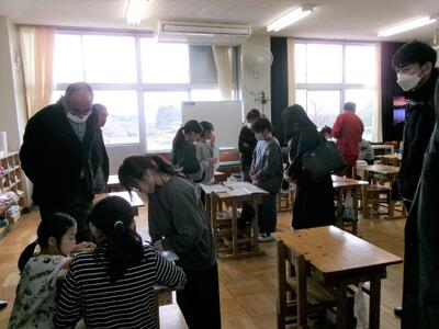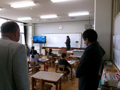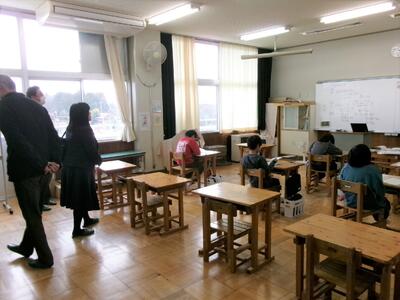 委員の皆様に、授業を見ていただきましたが、複式学級の授業を初めてご覧になる方もいらっしゃいました。