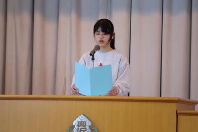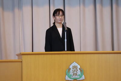 代表児童が、新年度の目標や決意について、6年生らしい立派な態度で発表しました。