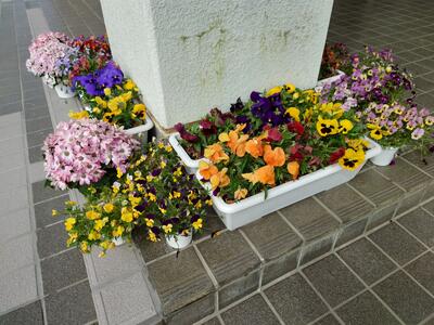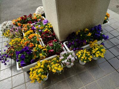 登校して一番最初に目にする花々。