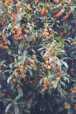 オレンジ色の小さな花を咲かせるキンモクセイ。